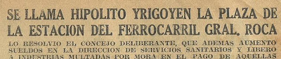 cambiar el nombre de la plaza por el de "Presidente Hipólito Yrigoyen" (Buenos Aires, 12/7/1852 - 3/7/1933) que